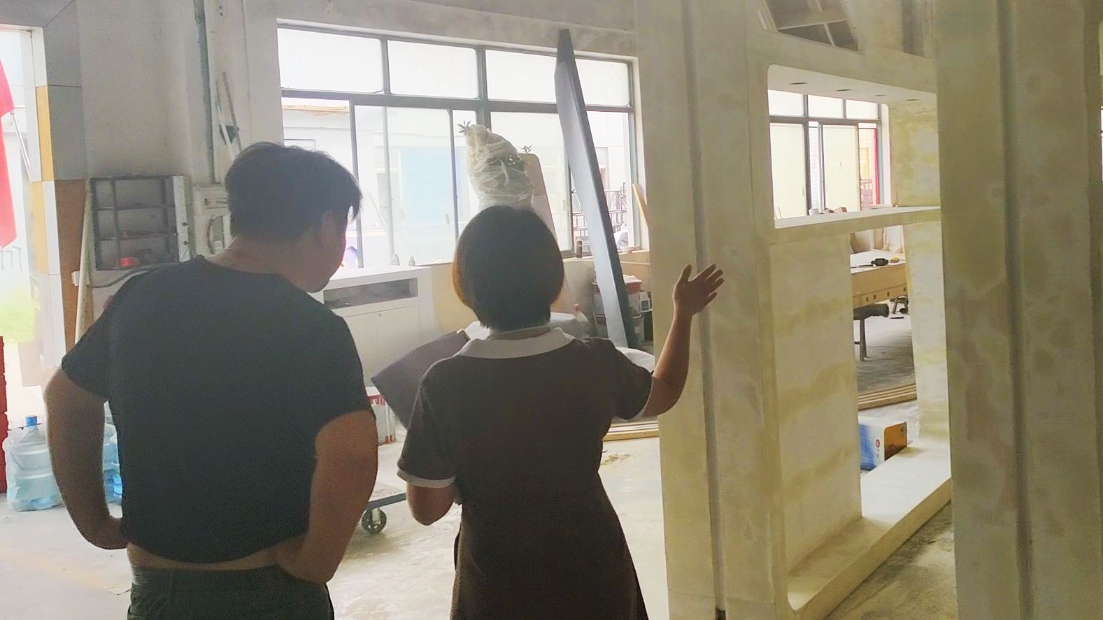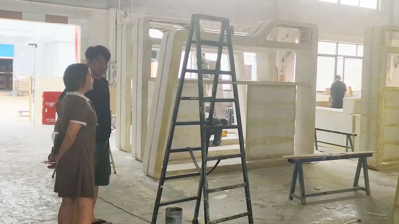 Carol在工廠檢查展臺預(yù)搭結(jié)構(gòu)情況
