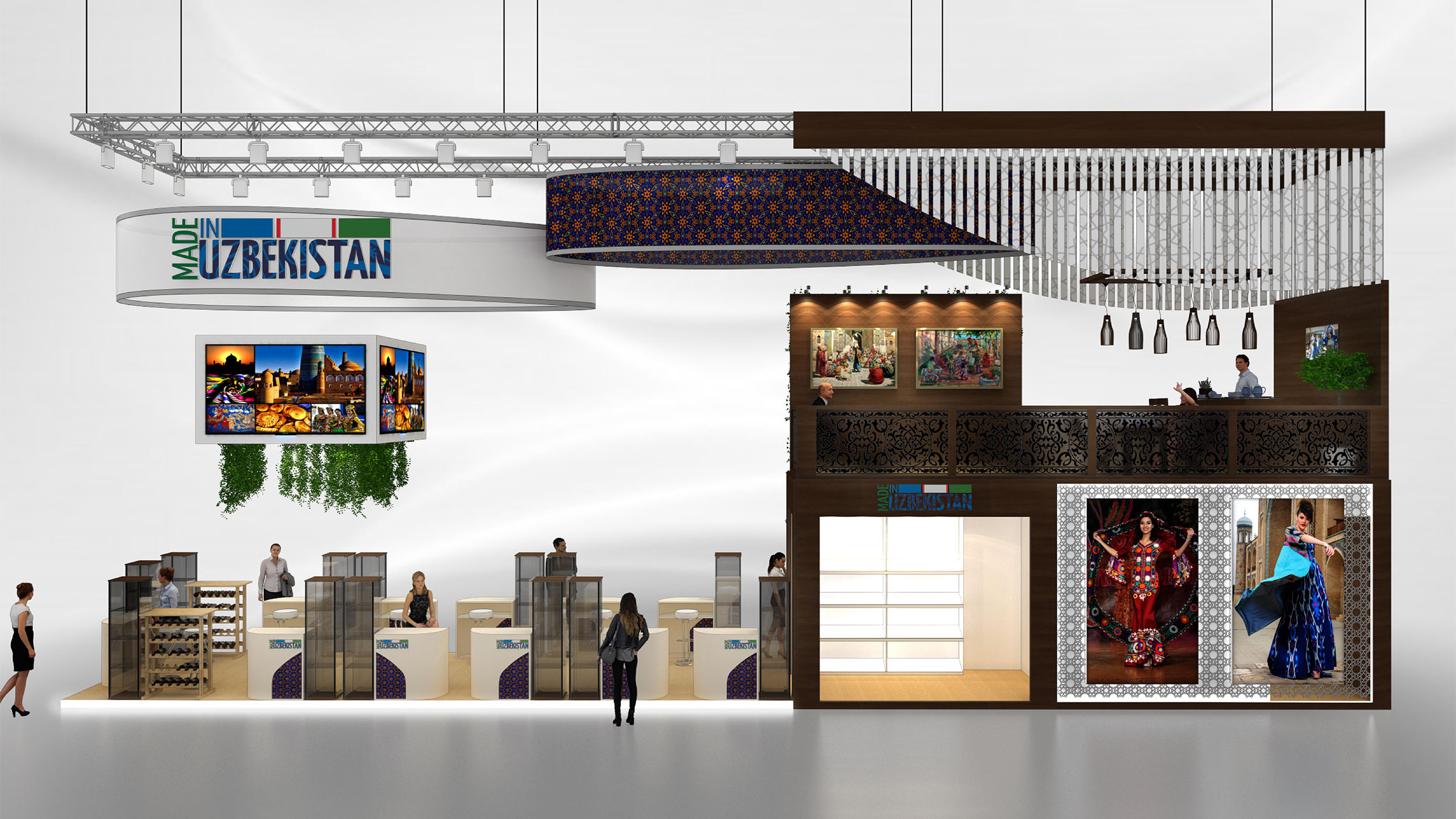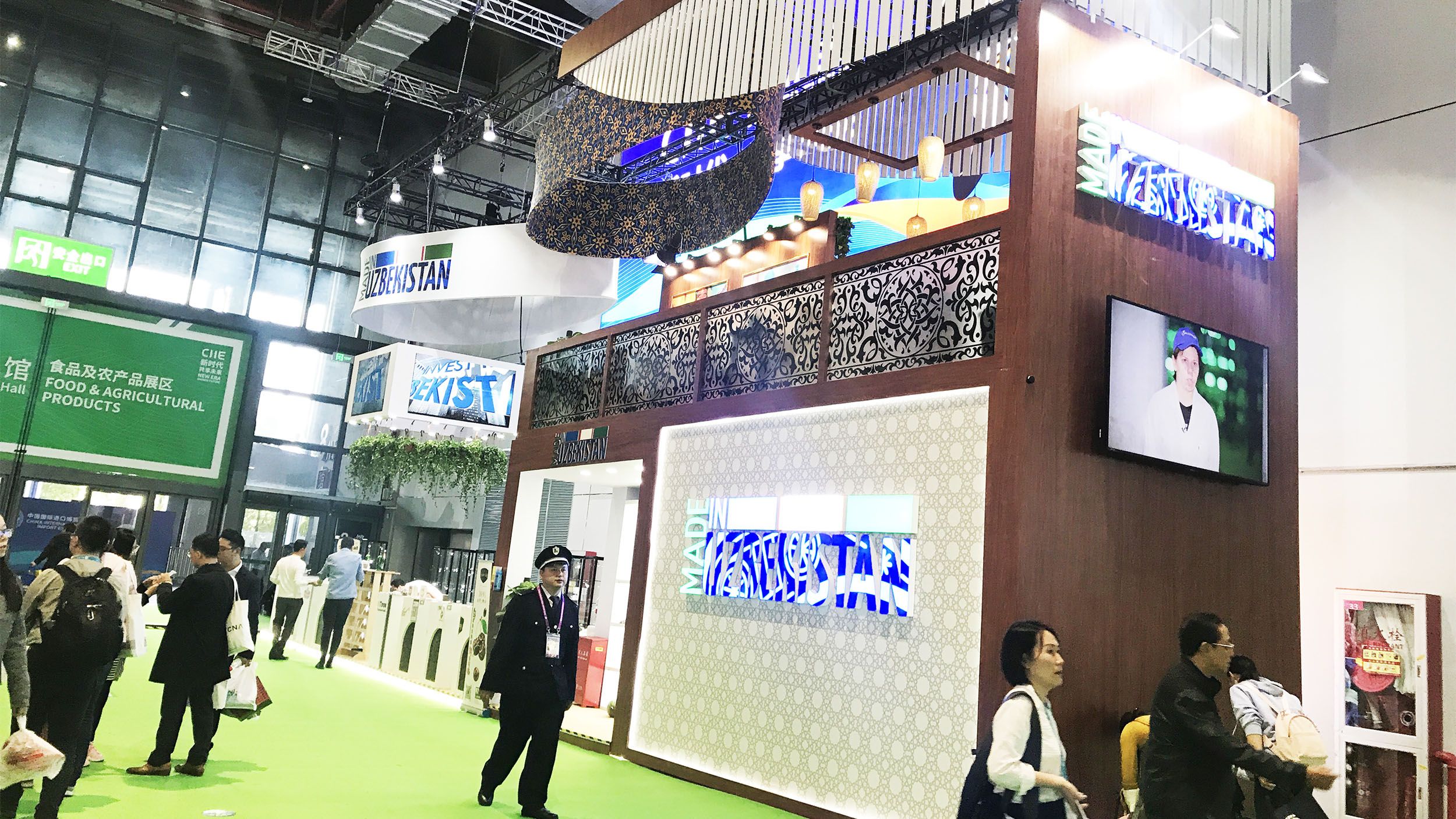 烏茲別克斯坦展臺(tái)設(shè)計(jì)搭建很有這個(gè)國(guó)家的特色,確實(shí)不錯(cuò)呢