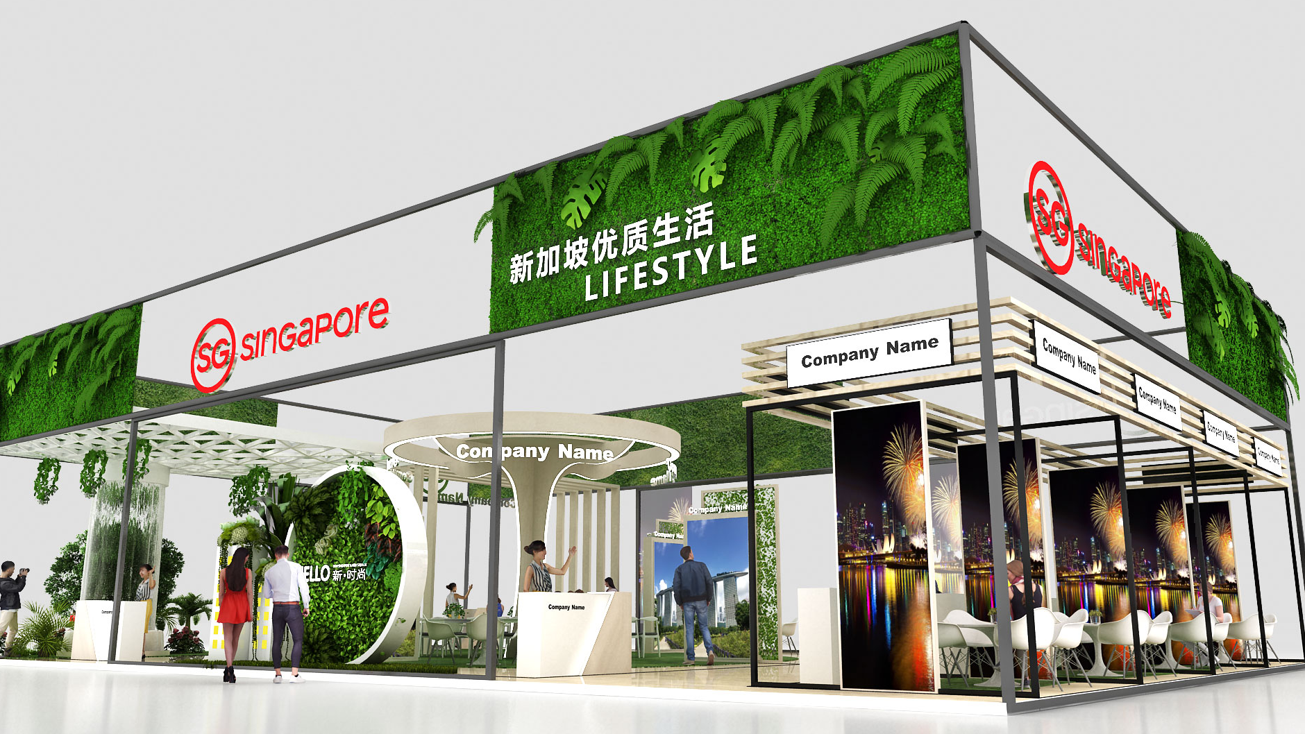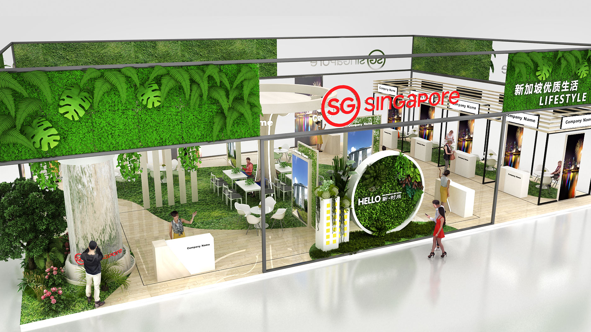 新加坡的展臺(tái)搭建設(shè)計(jì)比較符合新加坡的國(guó)家特色呢,滿眼的綠色